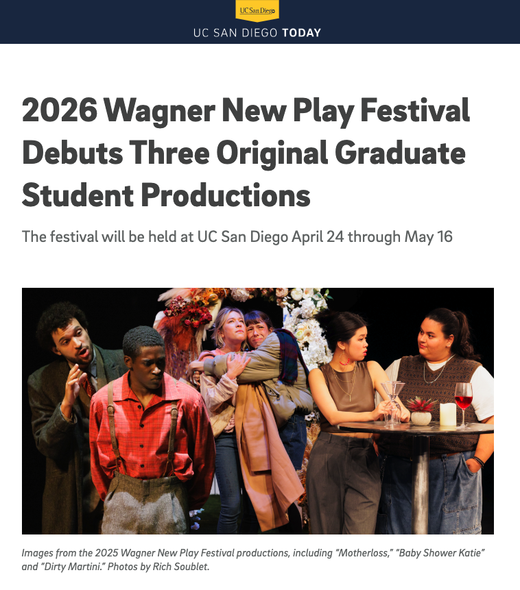 Subscribe to our Newsletter to receive up-to-date information about the online events produced by the Department of Theatre and Dance. Visit our Performances and Events pages to learn about the events and performances from our undergraduate and graduate students, faculty, alumni, and visiting artists.